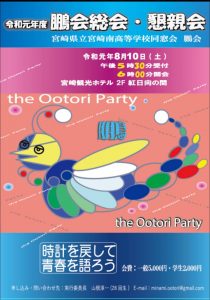 今年も8月20日(土)に宮崎観光ホテルにて宮崎南高校同窓会(鵬会総会・懇親会)を開催します。皆様のご参加お待ちしております。