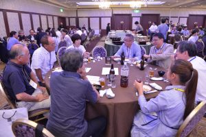 参加者の皆さんには各テーブルにランダムに座っていただき、各卓に実行委員によるテーブルホストを配置し、ホストの進行で、自己紹介や、それぞれの参加者の年代の学生生活の違いなどを話題に、世代を超えた交流をして、打ち解けてもらいます。