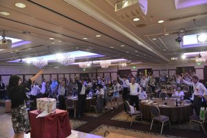 最初は世代がバラバラに集まり、静かに始まった懇親会も、各企画で世代を超えて大いに盛り上がり、最後はみんなで肩を組み合い、校歌の大合唱で、今年度の総会・懇親会の幕がおりました。