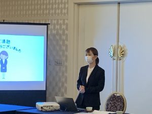 宮崎南高校の恩師の勧めがきっかけで参加した「令和2年度宮崎・学生ビジネスプランコンテスト」では「宮崎銀行頭取賞」、「第20回九州発・学生ベンチャー・ビジネスプランコンテスト」では3位にあたる「経済産業連合会長賞」を受賞されるなど、非常に将来性を認められた事業内容であり、8月7日の鵬会総会の場で、プレゼンをしていただきました。